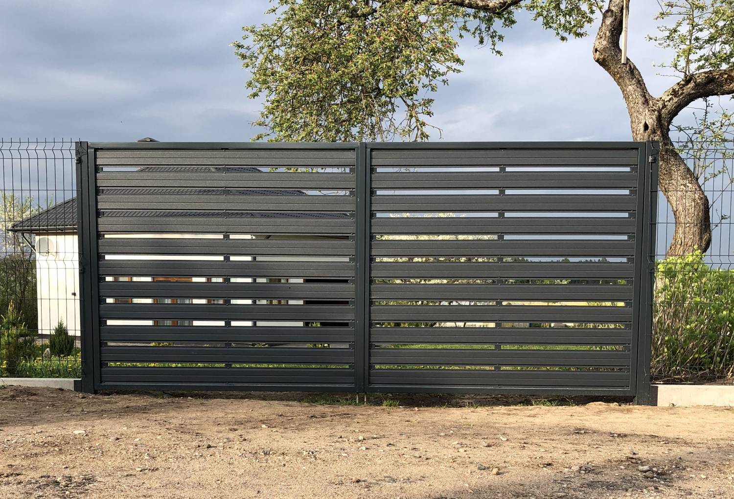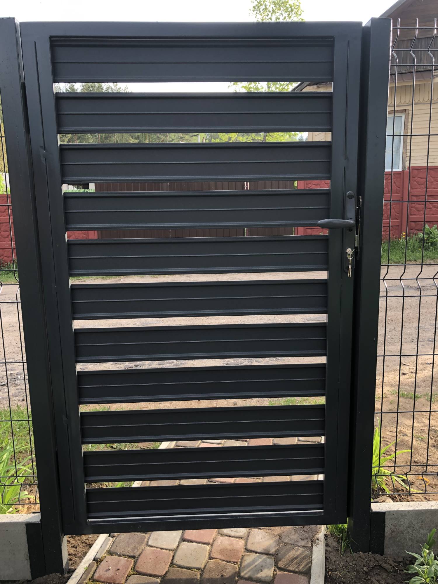 Стильное, современное решение для участка набирающее высокую популярность в последние годы. Данный вариант дизайна, сравнительно недавно появился на рынке СНГ, за счет чего встречается нечасто. Зашивка из горизонтального металлоштакетника поможет выделить ваш участок среди других за счет своего стильного и современного внешнего вида.