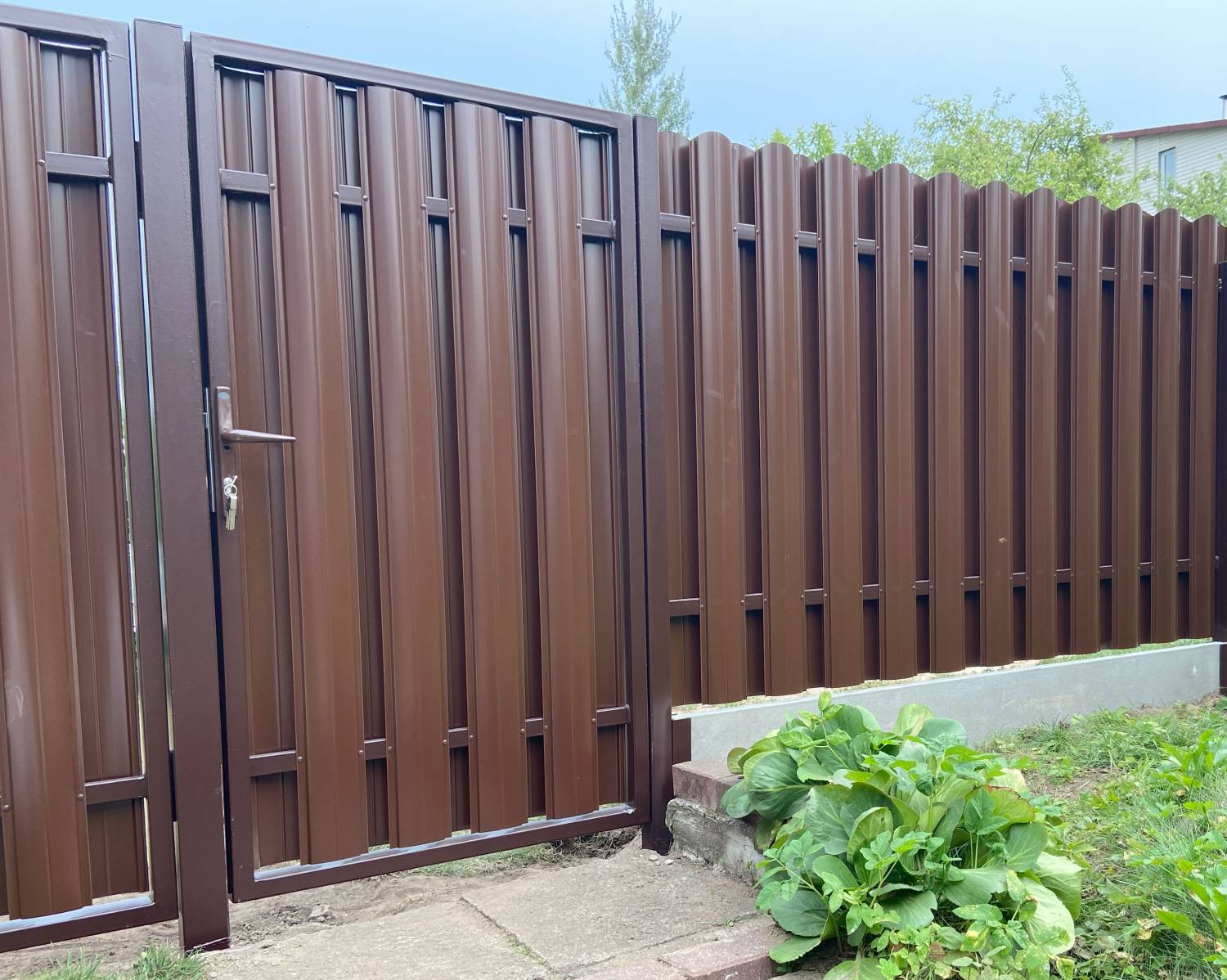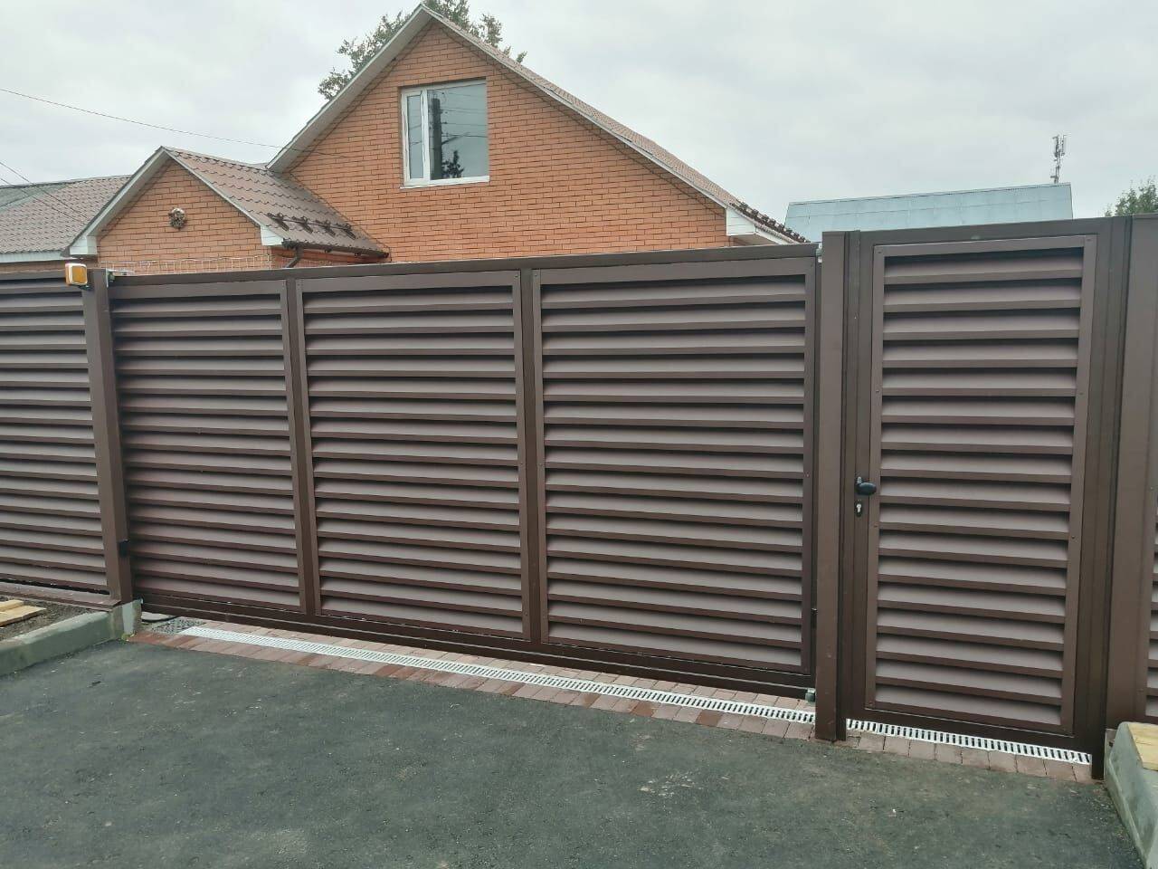 - Любые цветовые комбинации - подберём оттенки под фасад, ворота или ландшафт. Возможна покраска в один или два цвета.